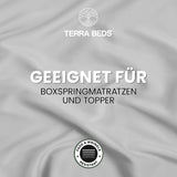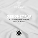 Also suitable for high mattresses, box spring beds with topper (up to 35 cm) and all cold foam, spring core and latex mattresses.