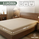 fitted sheet measuring 90 x 200 cm fits mattresses with widths of 80 to 100 cm and a length of 200 cm. This includes single beds, youth beds, guest beds, and care beds. For a perfect fit, the depth of the pocket must be at least 5 cm greater than the mattress height—our Terra Beds fitted sheets offer a pocket depth of up to 40 cm .
