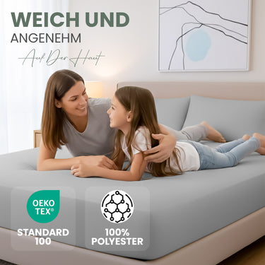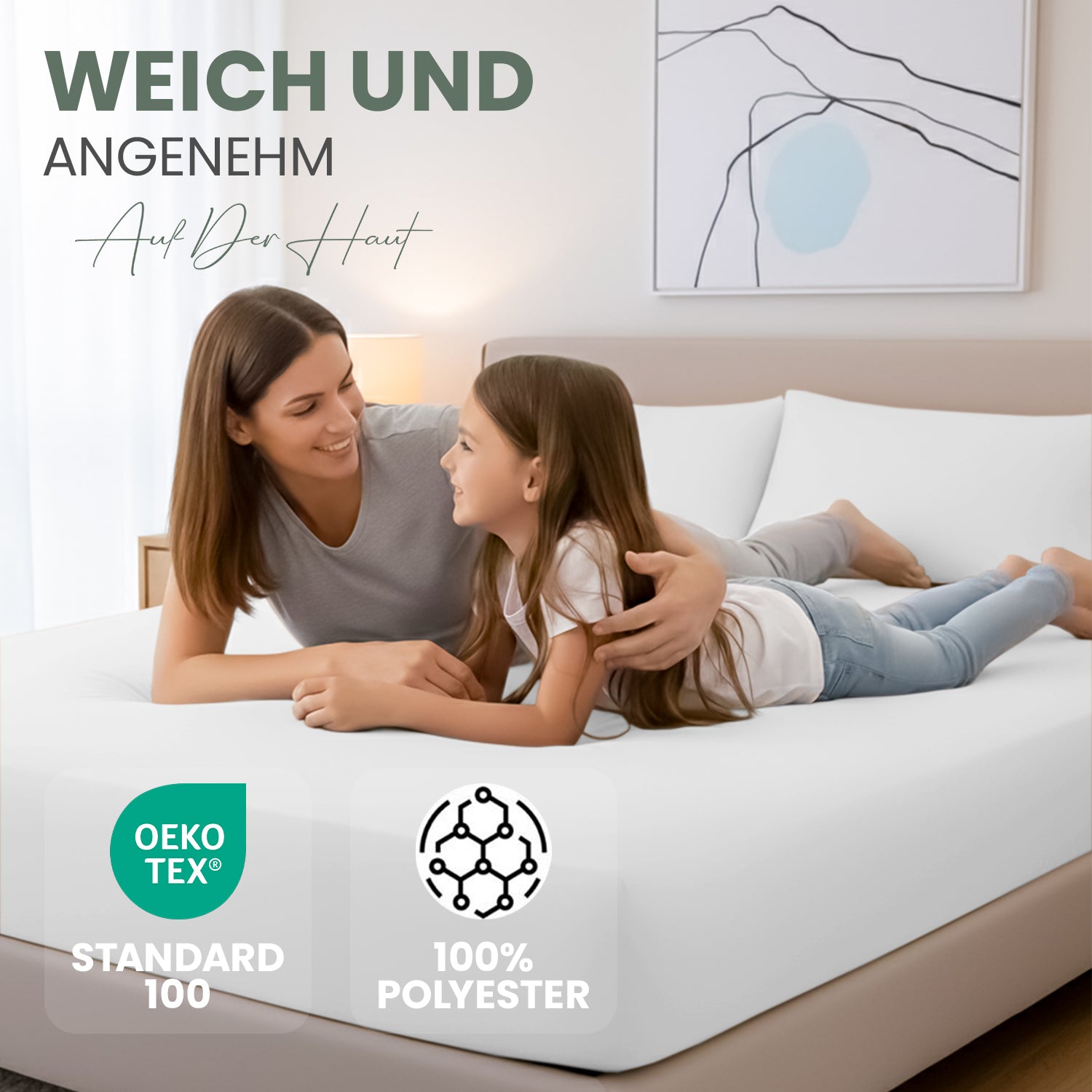 The 90x200 cm fitted sheet is the most popular size for single beds, youth beds, guest beds, and hospital beds in Germany. We lose up to 1,000 ml of moisture per night while sleeping—a good fitted sheet with high absorbency and breathability is crucial for restful sleep.